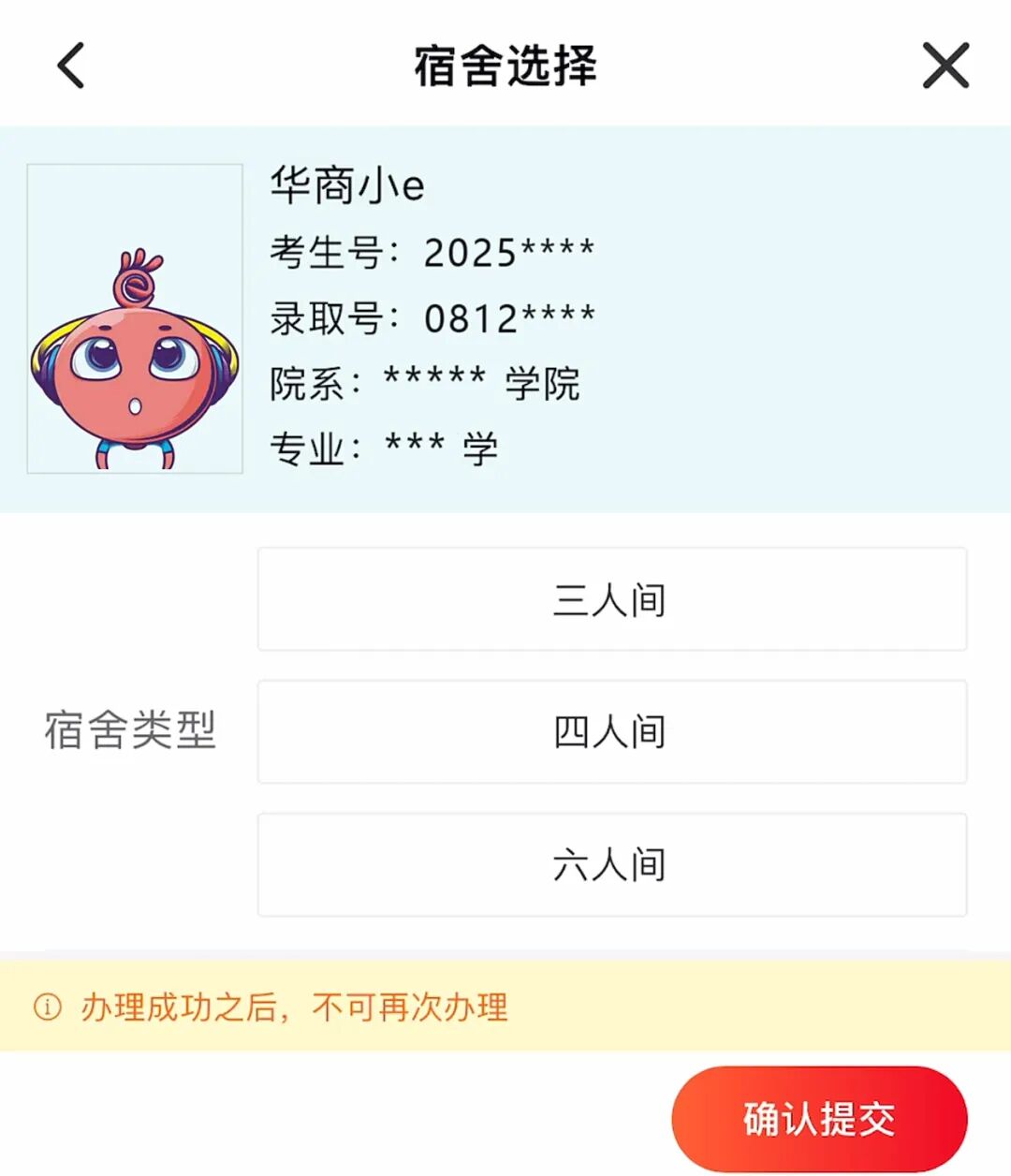 *广州华商学院办理生源地贷款的新生如需参与选宿舍环节,请及时上传缓交附件,资料审核通过后可参与在线选宿舍。由于资料需一定的审核时间,请同学们提前上传,以免错过选宿舍时间。