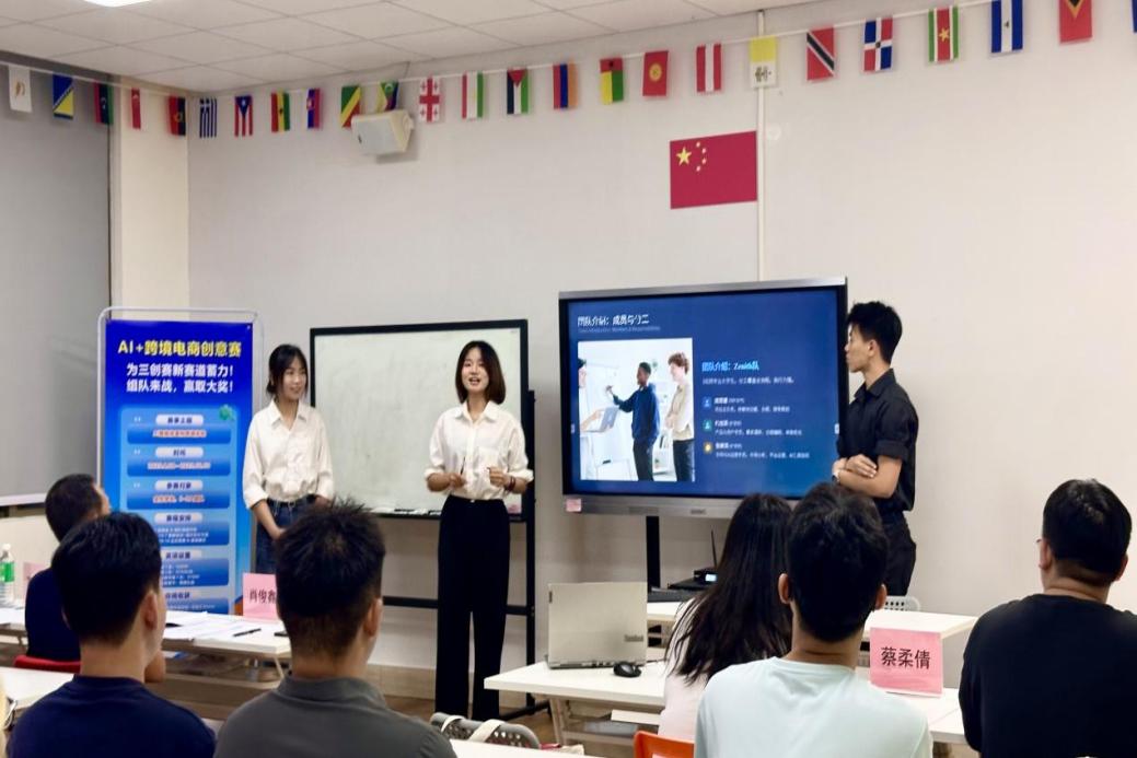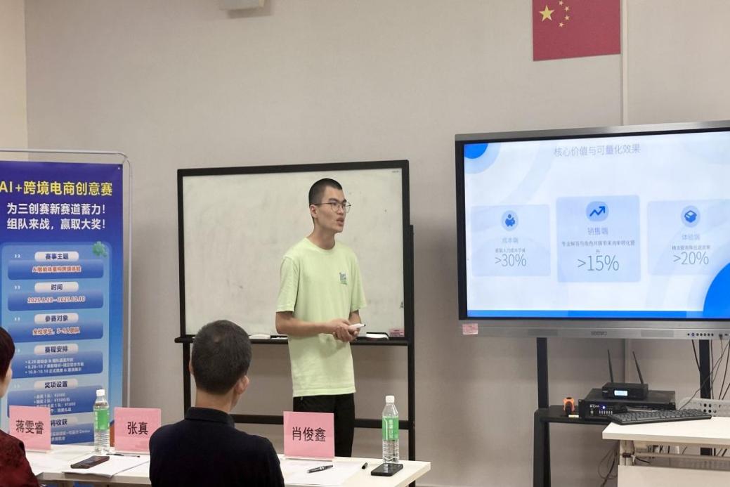 在10月7日提交的“AI跨境解决方案书”环节中,同学们积极对接企业真实需求,围绕物流效率、客户服务、精准营销等核心场景,提出了多项具有落地潜力的AI解决方案。赛前,国际学院组织了线上答疑会,企业导师就同学们关心的问题进行了针对性指导。10月11日,五支优秀团队晋级线下路演,通过PPT讲解与AI智能体演示,全面呈现了技术与商业的融合创新。
