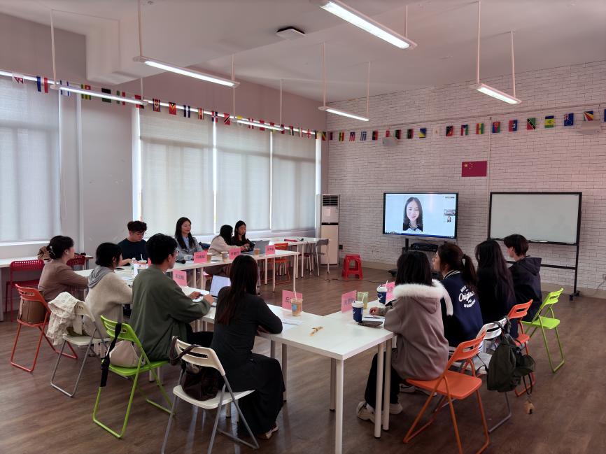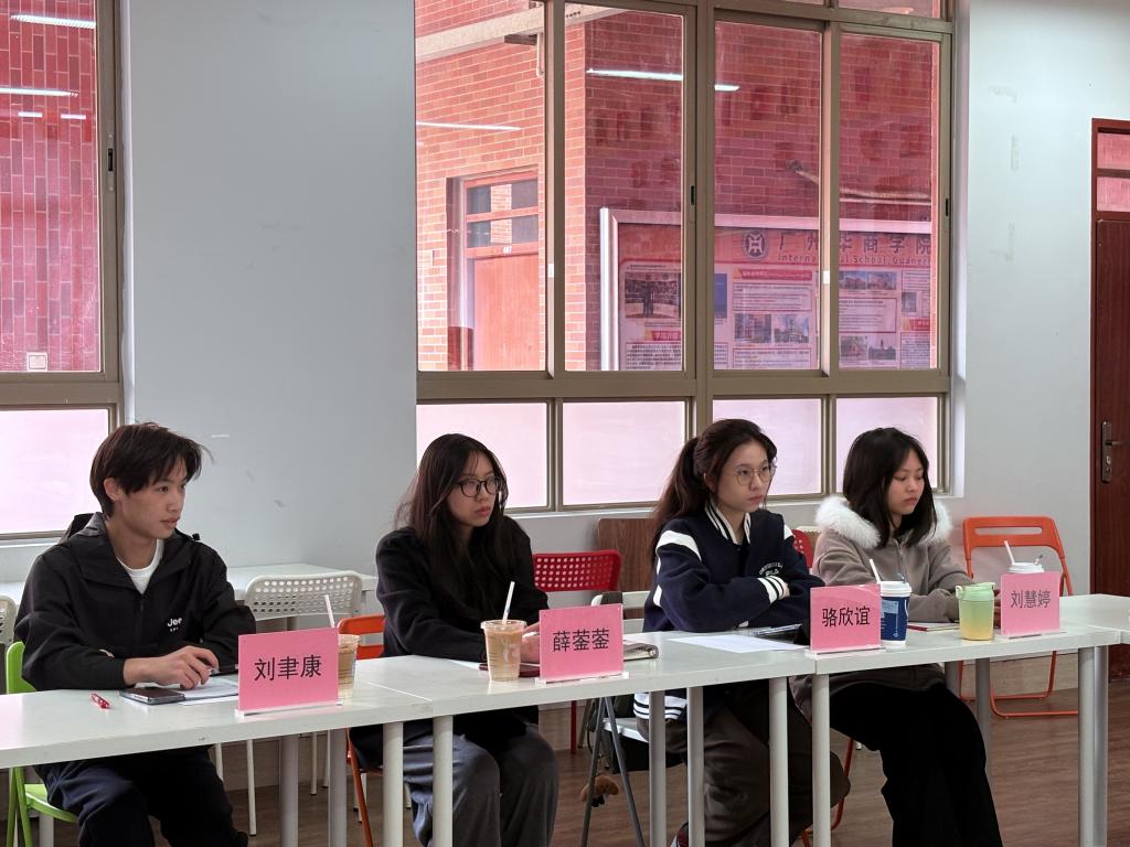 学工办主任关慧慧首先对广东技术师范大学四位同学的到访表示热烈欢迎。她指出,这几位同学作为"挑战杯"竞赛的参赛团队成员,已积累丰富的实战经验,相信通过他们的经验分享和悉心指导,国际学院的学生们不仅能够更清晰地把握任务分工,加深对赛事的理解,更能有效完善项目策划书,为即将到来的比赛做好充分准备。