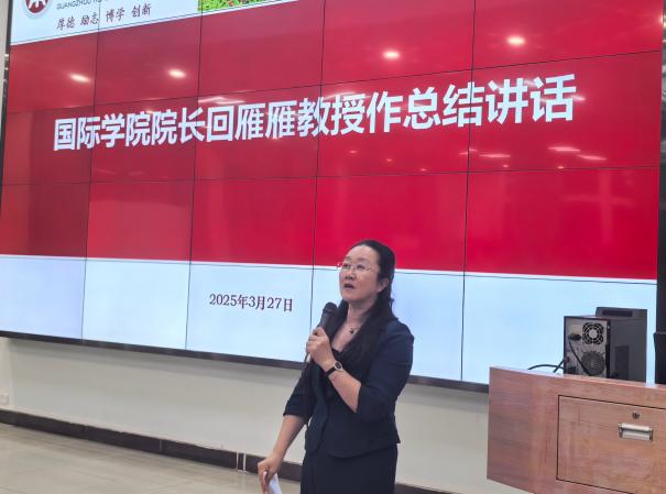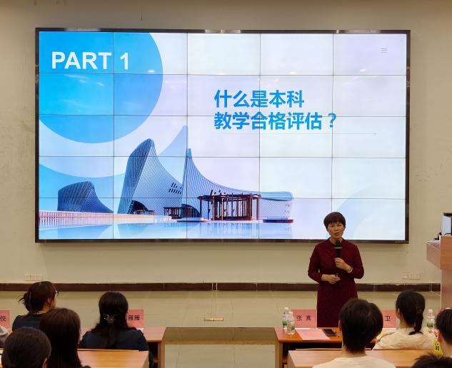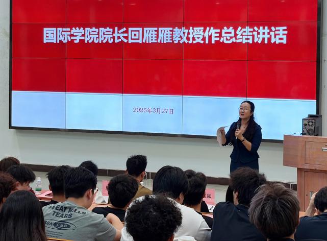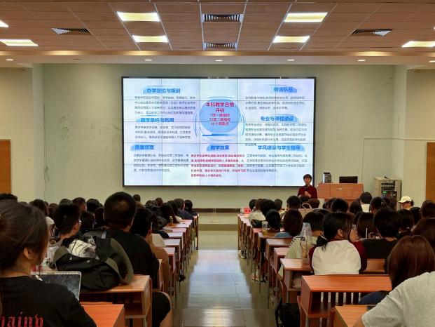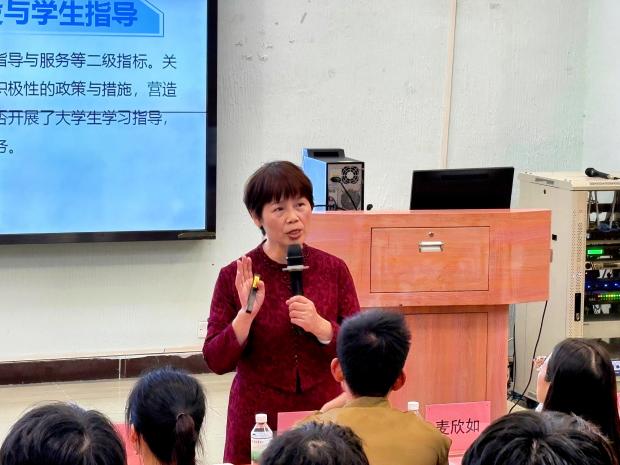 “两个冲高”的目标:一是英语能力不断提升,体现国际学院的办学特色,提升国际交流和跨文化交际能力;二是积极参与学科竞赛、创新创业等活动,全面提升国际学院大学生的核心竞争力。她强调,全院师生都要深入践行“以评促建、以评促改、以评促管、评建结合”的方针,既要守住底线要求,又要追求卓越发展,以评估为契机推动教育教学质量提升。