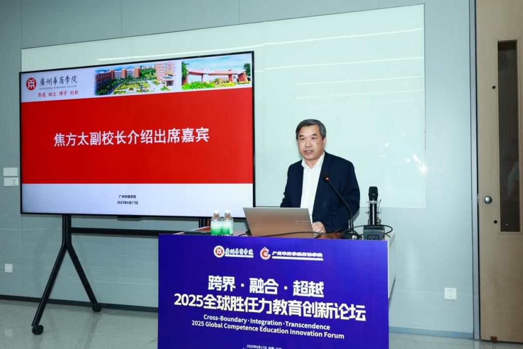 为深入探索新时代教育国际化发展路径,创新全球胜任力人才培养模式,2025年6月17日,由广州华商学院主办、国际学院承办的"跨界·融合·超越——2025全球胜任力教育创新论坛"在广州华商学院广州校区弘美楼308报告厅举行。中国教育发展战略学会国际胜任力培养专业委员会张宁理事长、陈明明副主任、李东林副主任、广东外语外贸大学国际治理创新学院院长赵龙跃教授、深圳大学外国语学院副院长金娜娜教授、广州华商学院胡军校长、范忠宝副校长、焦方太副校长、许娜副校长、广州华商职业学院孙虎副校长、广州华商技工学校童国梁校长,以及广州华商学院国际交流与合作处负责人、各二级学院学工主任、广州华商职业学院国际交流与合作处领导、国际学院学生骨干共同出席了论坛。广州华商学院副校长焦方太、国际交流与合作处王文忠处长分别主持了开幕式和论坛。