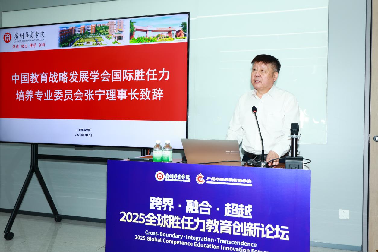 中国教育发展战略学会国际胜任力培养专业委员会张宁理事长从教育变革趋势、学科交叉融合、全球胜任力培养三个维度,系统阐述了全球胜任力对未来人才培养的战略意义;深入剖析了当代青年在应对全球胜任力挑战时的优势与不足,并提出教育界需实现从知识传授向能力培养范式转变的建议,可将全球胜任力作为知识迁移的核心能力加以培育,这既是关乎国家未来发展的重要命题,也是提升中国国际影响力的关键所在。张宁理事长高度评价本次论坛“跨界、融合、超越”主题,认为其精准把握了时代脉搏,也是专委会与高校协同推进全球胜任力人才培养的又一次努力和尝试,期待通过多方合作构建良性育人生态,为国际组织输送更多高素质人才,提升中国的国际形象和影响力。