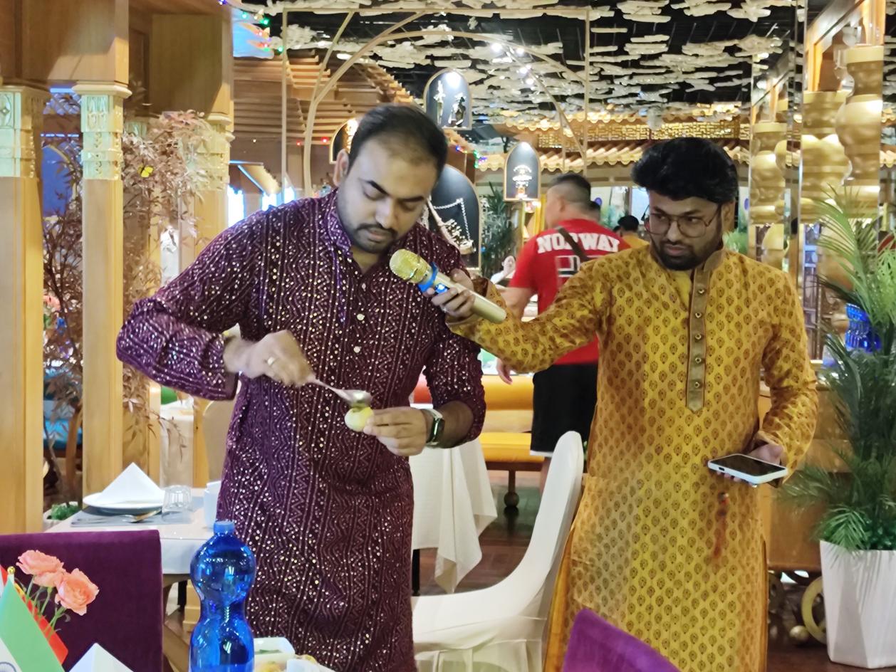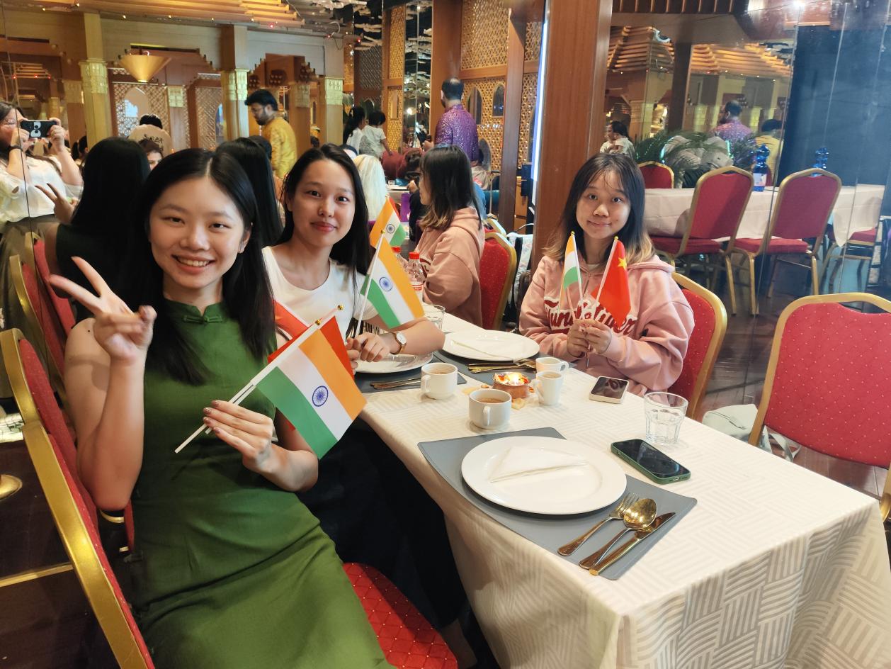 此次活动深受同学们喜欢,他们纷纷拍照留念,用心记录这场融合文化与美食的盛宴。分享会不仅深化了同学们对印度文化的认识和体验,还提高了他们的英语能力。通过了解异国文化,同学们增强了文化包容性,为未来走向世界打下良好基础,希望同学们未来能讲好中国故事,传播好中国声音,肩负起传播中华优秀传统文化的使命和责任。