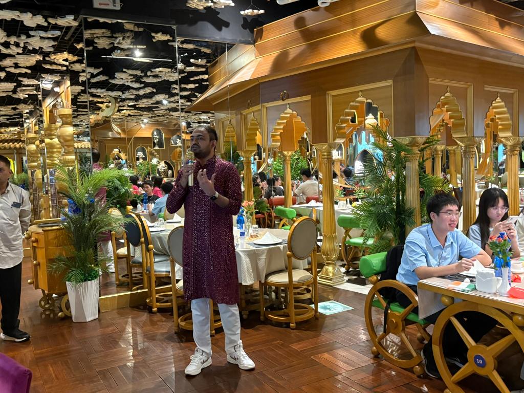 活动回顾 |印度文化分享会为了进一步拓宽大学生的国际视野,丰富校园多元文化氛围,继举办了加拿大、波兰等多个国家9期国际文化交流系列活动后,2024年11月1日,广州华商学院国际学院举办了第十期“探秘异域文化,增进文明互鉴”国际文化交流系列活动——印度文化分享会。本次分享会邀请Hiren Bhavsar担任主讲嘉宾,国际学院回雁雁院长、张真副院长、巴基斯坦籍教师Aneela Qadir博士、美国籍教师John Jung、土耳其籍教师Begum Firinci、菲律宾籍教师Joshua Cachin,以及来自国际学院、文学院、健康医学院、人工智能学院的30多名大学生齐聚Little PaPa印度尼泊尔餐厅,共同感受印度文化的魅力。国际学院院长回雁雁主持了文化分享会。