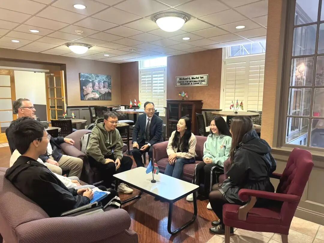 访问过程中,廖伊曼副校长一行亲切看望了正在米勒斯维尔大学就读的我校首届《121中美人才培养计划》双学位项目学生,详细了解同学们的学习进展与生活适应情况。廖校长勉励同学们勇于挑战自我,尽快融入美国高校文化环境,并特别强调了能力培养对个人成长与职业发展的重要意义,祝愿同学们学有所成、前程似锦。