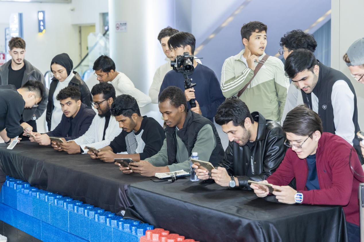 在机器人竞赛环节,留学生们通过FPV第一视角沉浸式参与机甲大师对抗赛,亲身体验了全向移动、精准射击与团队协作的科技竞技乐趣。