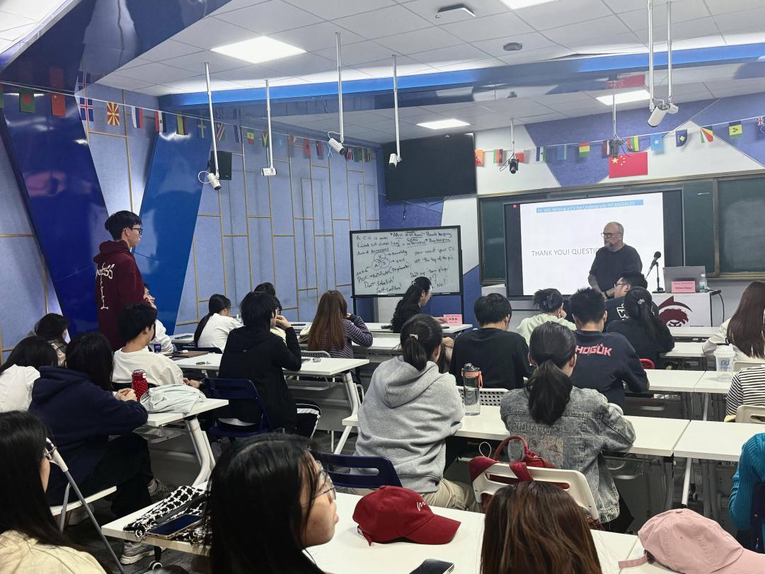 为助力2026届毕业生深入了解国际企业的岗位需求与求职路径,2025年11月25日,国际学院特邀广东外语外贸大学教授、AACSB认证顾问William Hickey博士担任主讲人,开展了题为“职业发展讲座:如何撰写简历(A Presentation for Your Career Development)”的专题活动。William Hickey博士拥有宾夕法尼亚州立大学人力资源开发博士学位,曾两度荣获美国富布赖特教授奖,在人力资源开发、国际商务、能源政策及组织行为等领域具备超过二十年的实践经验,并在亚洲及东盟地区积累了深厚的学术与实践背景。讲座中,他结合个人成长与求职经历,为来自国际学院、文学院、人工智能学院、教师教育学院及健康医学院的五十余名师生系统解析了外资企业的求职路径与简历撰写专业要点。本次讲座由国际学院回雁雁院长主持。