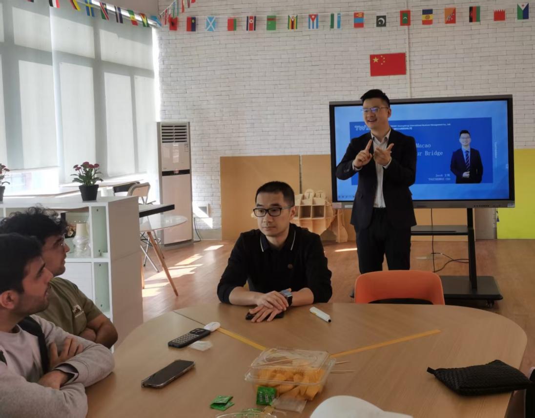 广州友方国际劳务有限公司总经理覃卓男向来华留学生们介绍了公司在支持中国企业出海、本土员工培训、签证服务及法律咨询等方面的工作。作为连接国内劳动力与海外就业市场的重要桥梁,覃经理的分享为来华留学生们提供了创新创业的新视角和可行思路。