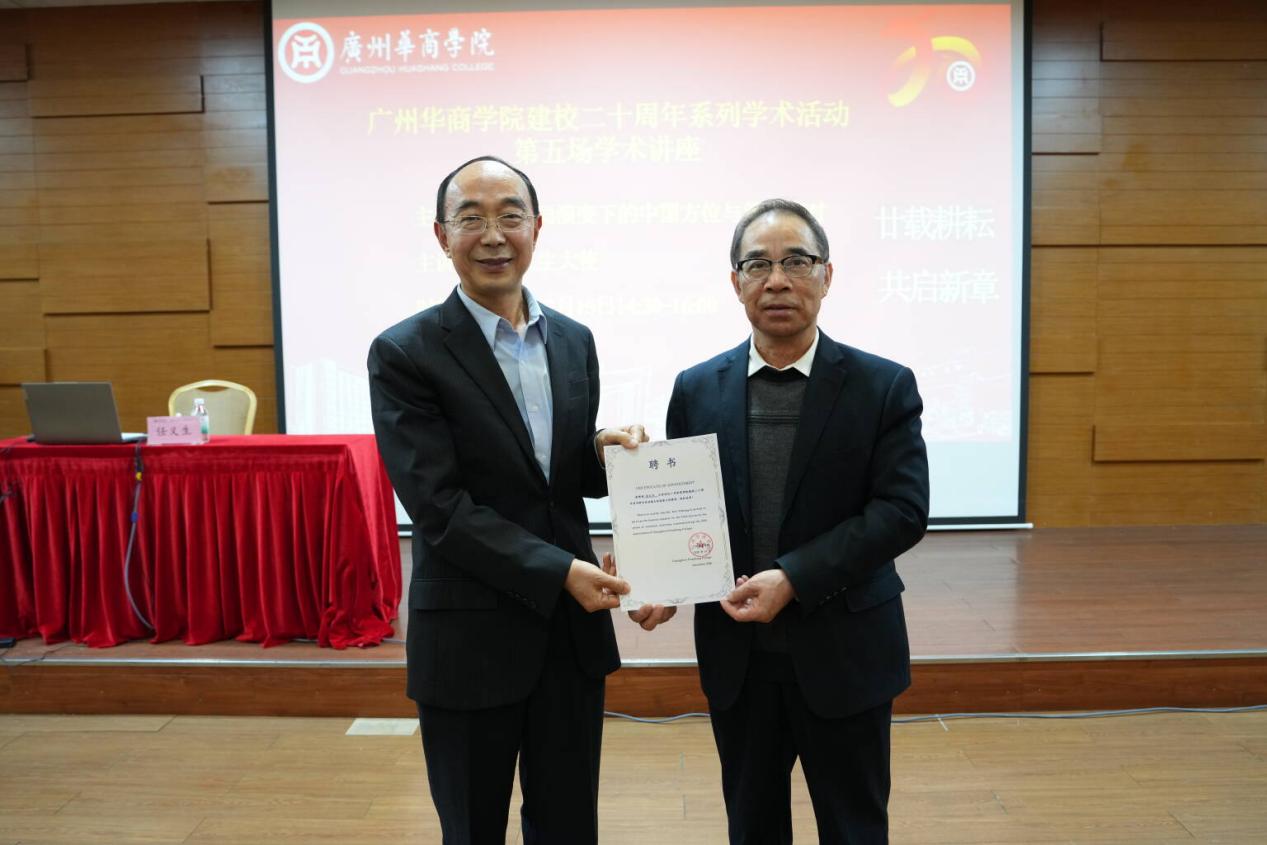 为迎接建校二十周年华诞,进一步营造学术氛围、拓展师生国际视野,2025年12月15日,广州华商学院特邀联合国人权理事会咨询委员会委员、前中国常驻联合国代表团参赞、常驻日内瓦代表团公使衔参赞、驻清迈总领事、驻利比里亚大使任义生先生莅校作专题报告。报告以“全球格局演变下的中国方位与策略应对”为主题,由焦方太副校长主持。校友会会长郭银华教授、国际学院回雁雁院长,以及健康医学院、国际学院、教师教育学院等院系二百余名师生共同聆听了本次报告。