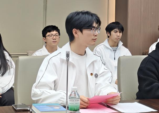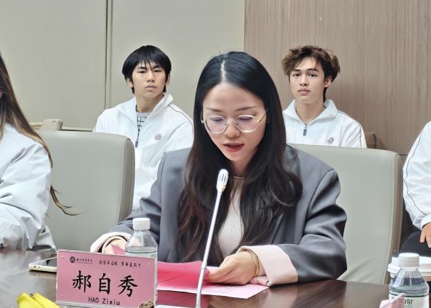 座谈会伊始,回雁雁院长首先宣读《关于同意国际学院成立青年全球胜任力协会的批复》,正式宣告协会成立。随后,青年全球胜任力协会社团负责人黄集森同学、指导教师郝自秀先后发言。黄集森同学在发言中强调:"对于当代青年学子而言,跨文化沟通能力与全球视野格局,已不再是求职竞争的'加分项',而是立足社会、拥抱世界的'必修课'。青年全球胜任力协会正是为怀揣同款追求的同学搭建成长赋能平台。"