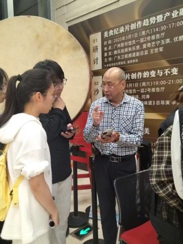 图2、图3榄韵未来探索队于广州市黄埔区励弘文创旗舰园与非遗文化传承人梁老师交谈
