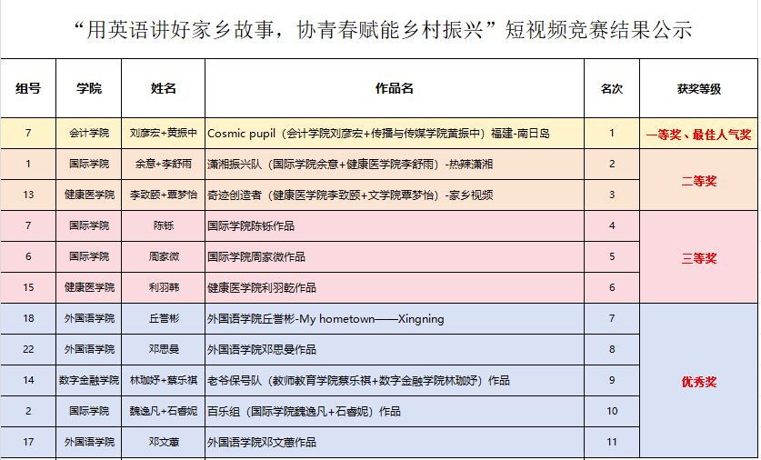 为鼓励同学们深入挖掘家乡文化,以双语创作展现各地特色,用青春视角向世界传递中国乡村的魅力,国际学院结合校团委“返家乡”寒假社会实践活动为契机,启动“用英语讲好家乡故事 携青春赋能乡村振兴”主题短视频竞赛。从2025年1月开赛以来,各学院同学积极参加,共收到30份有效作品。